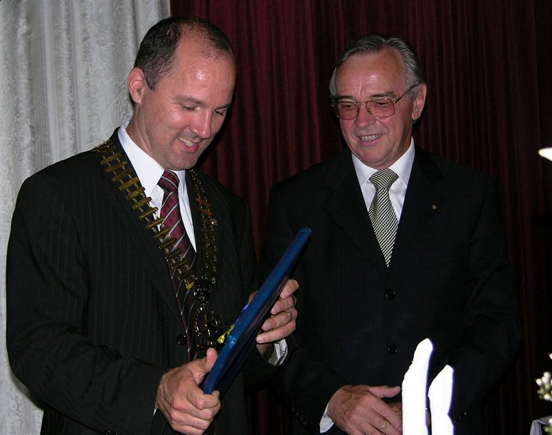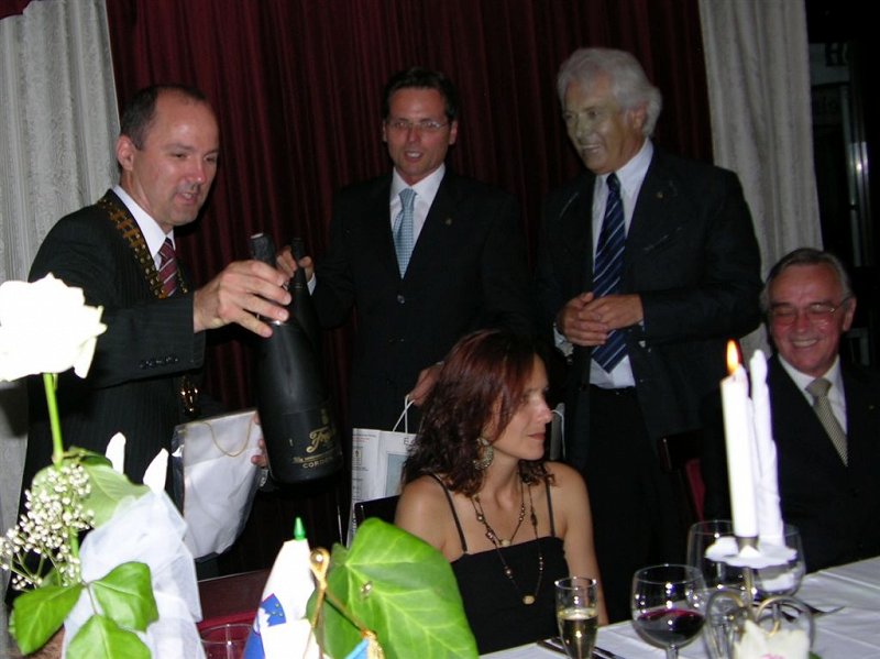 novemu predsedniku Tomiju Ilijašu, ki je v svojem prvem govoru poudaril, da bo nadaljeval uspešne projekte Rotary kluba Nova Gorica iz preteklih let in se skupaj z novim vodstvom še posebej osredotočil na utrjevanju rotarijskega prijateljstva v tem obmejnem prostoru. Svečane večerje so se udeležili tudi gostje iz Rotary klubov iz sosednje Italije na čelu z novim predsednikom RC Tržič (Monfalcone), gospodom Marinom Boscarolom ter novim predsednikom