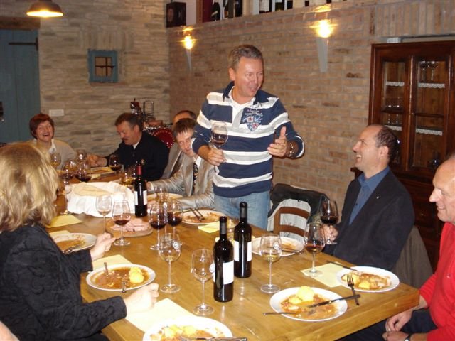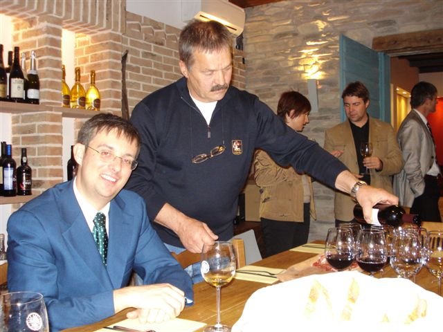 Boleslavu Merviču iz Šempasa, ki nam je predstavil tri vina lastne blagovne znamke JNK (jen'k) in sicer: Merlot letnik 2004, Chardonnay letnik 2003 in Tokaj letnik 2004. Z degustacijo teh nepozabnih vin smo pričeli ob tankih rezinah mortadele in pršuta, narezanih z