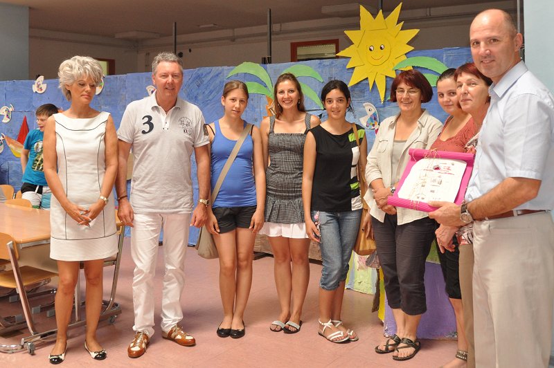 Na srečanju ob koncu šolskega leta, na katerem je bila prisotna tudi ravnateljica OŠ Kozara, gospa Kati Čubej s sodelavkama Sanjo Bekrić in Jeleno Komel, so nam učenci podarili čudovit izdelek iz keramike, delo njihovih ustvarjalnih rok in se nam zahvalili za čudovite dni, ki so jih preživeli v Žusterni.