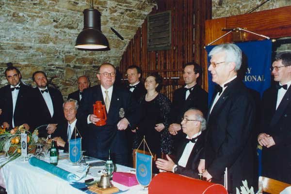 g. Edgar Piskernik, guverner Distrikta 1910 izroča rdečo svetilko - prehodni simbol najmlajšega kluba v distriktu