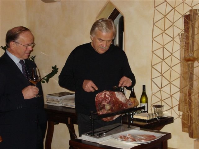 zgodbo nam je slikovito opisal mojster vinarstva in naš tokratni gostitelj, Marjan Simčič. S svojim obiskom so nas počastili prijatelji iz Tržiča (RC Monfalcone, Italija) in sosednje Gorice