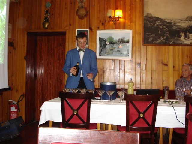 Že pred samim predavanjem smo bili postreženi s pijačo, ki je prvič nastala v času zlate dobe cocktailov v 20. in 30. letih XX. stoletja: Sidecar, po samem predavanju pa smo bili deležni še drugih pisanih tekočih užitkov: Daiquiri, Amaretto Sour, Cosmopolitan, Blue Lady ter Tequila Sunrise. Pri vsakem cocktailu smo izvedeli tudi zgodbo o njegovem nastanku ali pa o njegovih sestavinah. Kljub okoliščinam, ki so narekovale improvizacijo, je priprava pijač potekala gladko, brez kakršnih koli logističnih zapletov, za kar je zaslužno skupno sodelovanje vseh navzočih rotarijskih prijateljev, predvsem pa prijatelja Rastija Fakuča.