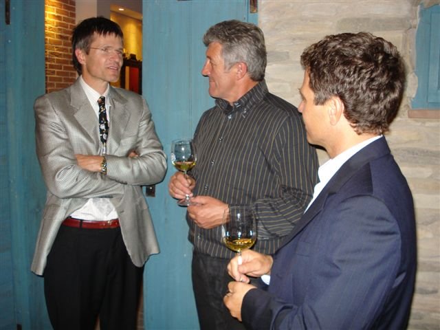 Boleslavu Merviču iz Šempasa, ki nam je predstavil tri vina lastne blagovne znamke JNK (jen'k) in sicer: Merlot letnik 2004, Chardonnay letnik 2003 in Tokaj letnik 2004. Z degustacijo teh nepozabnih vin smo pričeli ob tankih rezinah mortadele in pršuta, narezanih z
