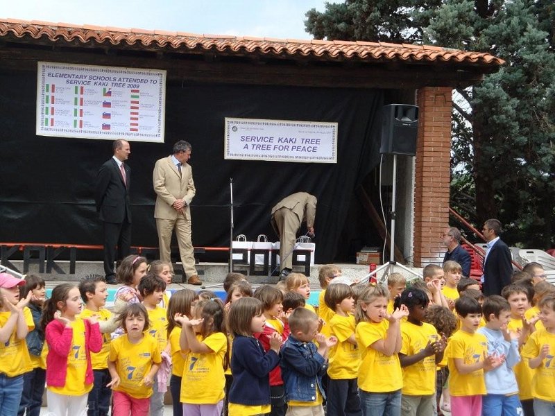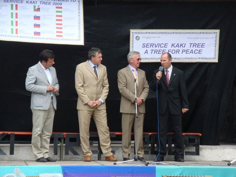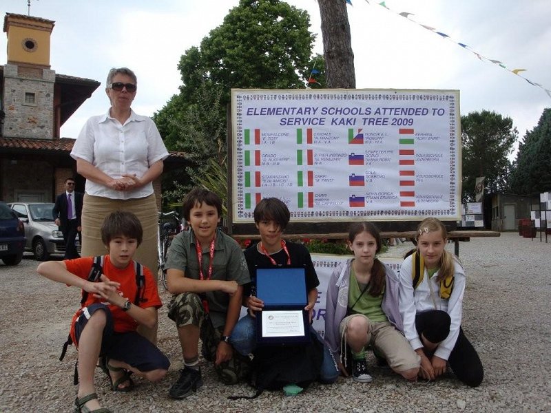 Na prireditvenem prostoru v parku v Selcah v sosednji Italiji se je v petek, 29. maja dopoldan, zbralo preko 300 učencev, učiteljev in rotarijcev iz treh držav: Italije, Slovenije in Avstrije. Na ta način smo obeležili zaključek mednarodnega projekta Kaki, ki se je v organizaciji Rotary kluba Tržič - Gradež in s sodelovanjem Rotary kluba Nova Gorica ter Rotary kluba Judenburg iz Avstrije odvijal v zadnje pol leta. V njem je sodelovalo devet osnovnih šol iz Italije (med njimi tudi Osnovna šola Romjan iz Ronkov s slovenskim učnim programom), tri osnovne šole iz Slovenije, ena iz Madžarske ter tri iz Avstrije.