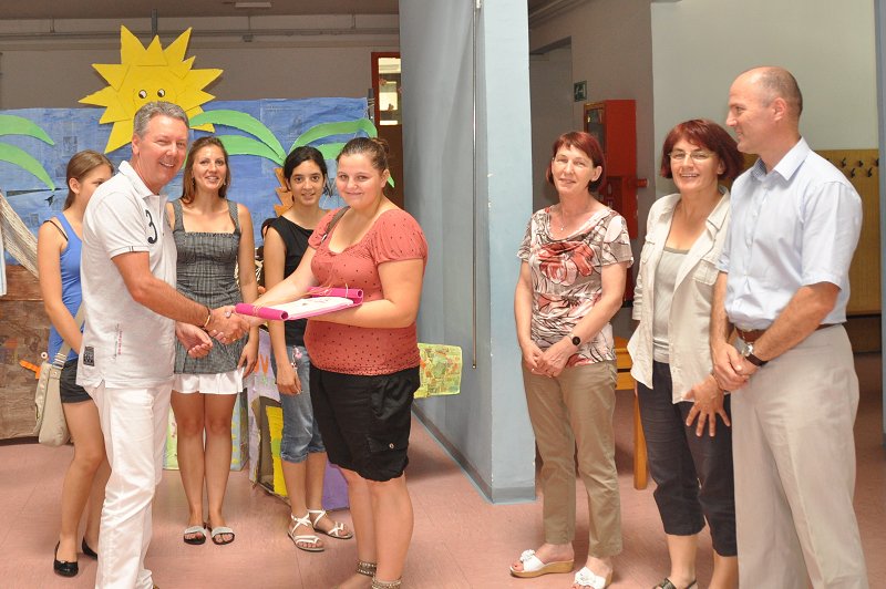 Na srečanju ob koncu šolskega leta, na katerem je bila prisotna tudi ravnateljica OŠ Kozara, gospa Kati Čubej s sodelavkama Sanjo Bekrić in Jeleno Komel, so nam učenci podarili čudovit izdelek iz keramike, delo njihovih ustvarjalnih rok in se nam zahvalili za čudovite dni, ki so jih preživeli v Žusterni.