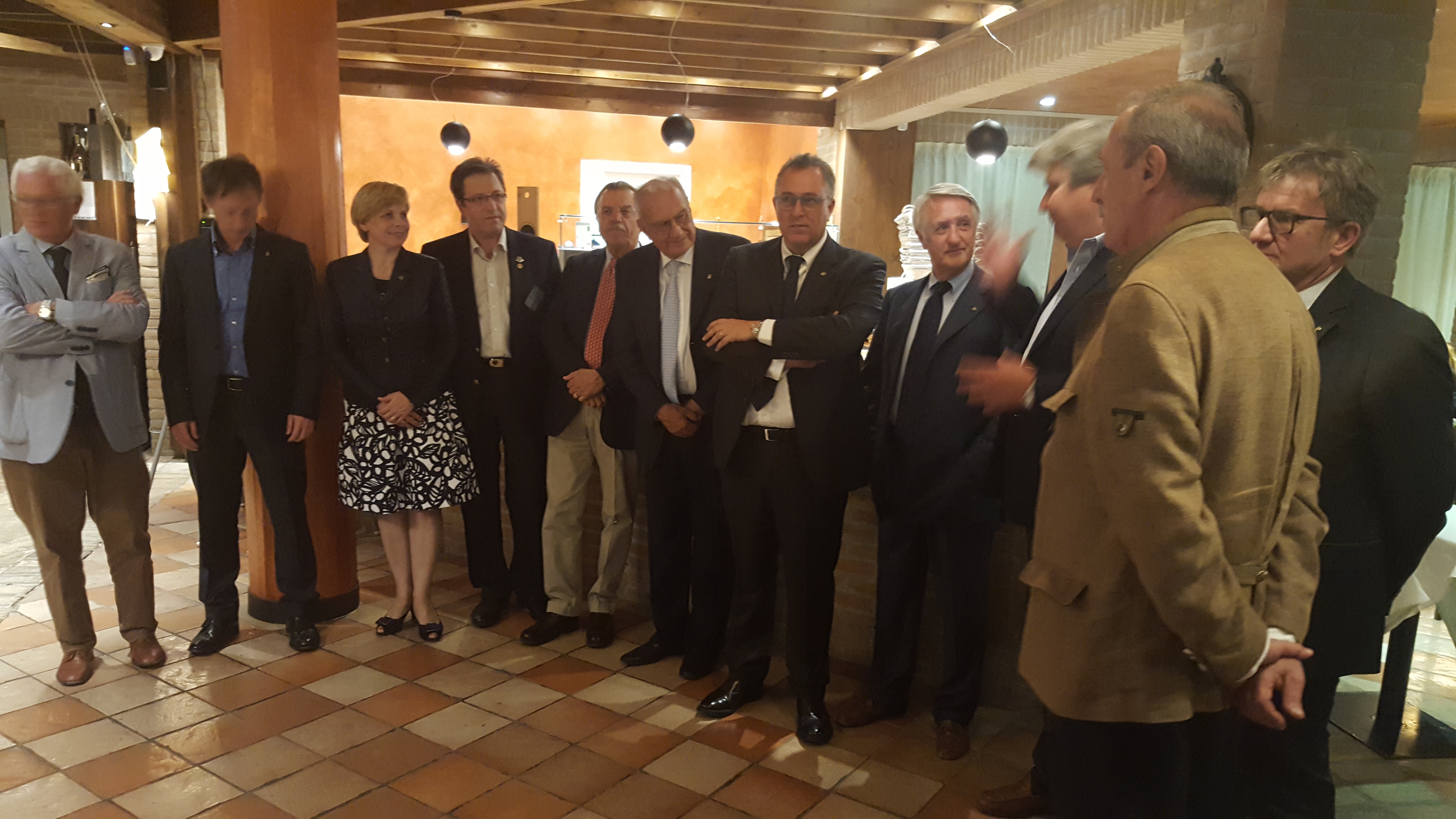 Točno ob 20. uri nas je, po udarcu kladiva in pozdravu zastavi, nagovoril Alfredo Pascolin, predsednik RC Gorizia in nam zaželel prijetno druženje. Srečanje sta s pozdravi popestrila past guverner Distrikta 2060 Giuliano Cecovini in past guverner Distrikta 1912 Martin Šinigoj.