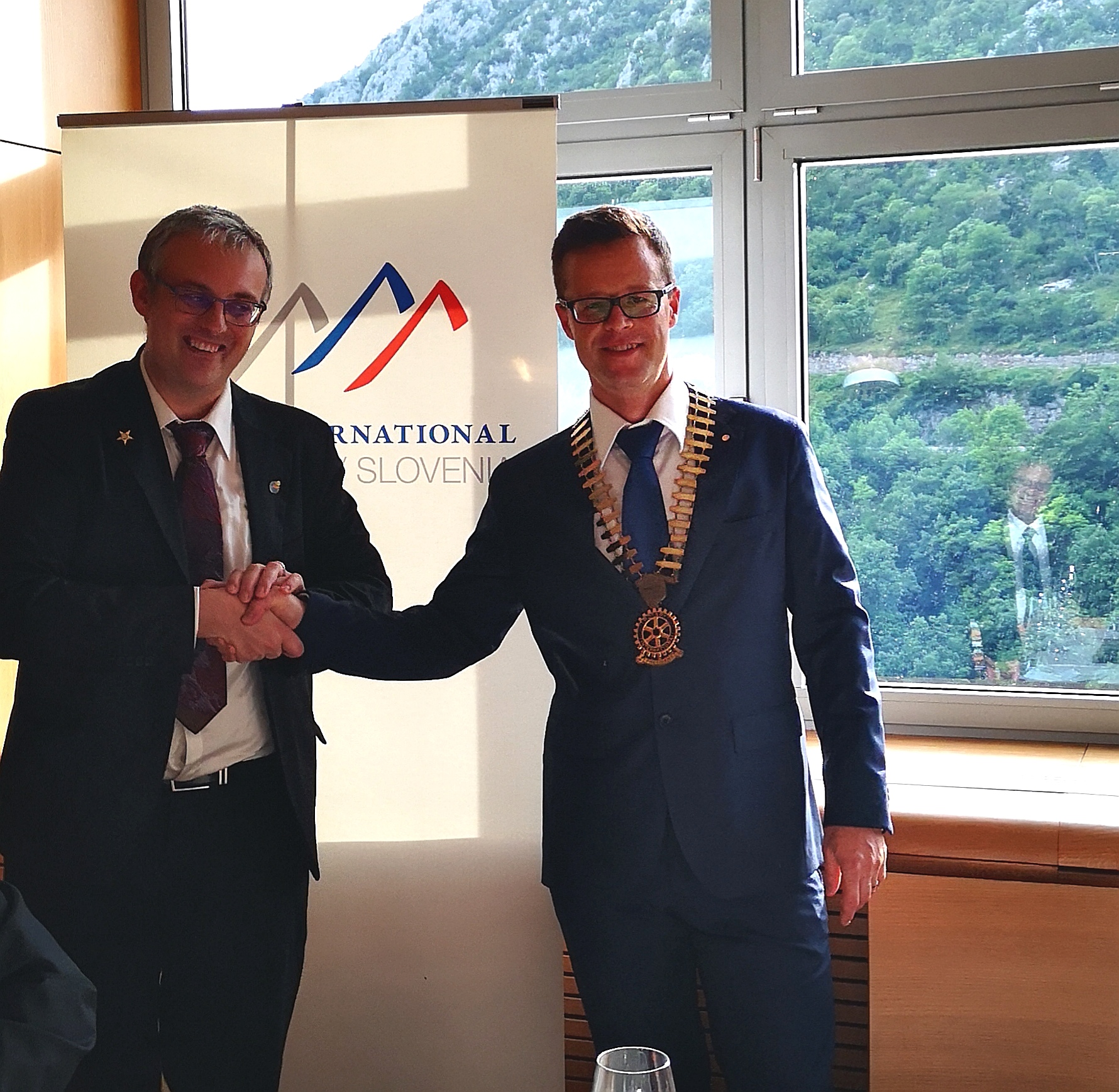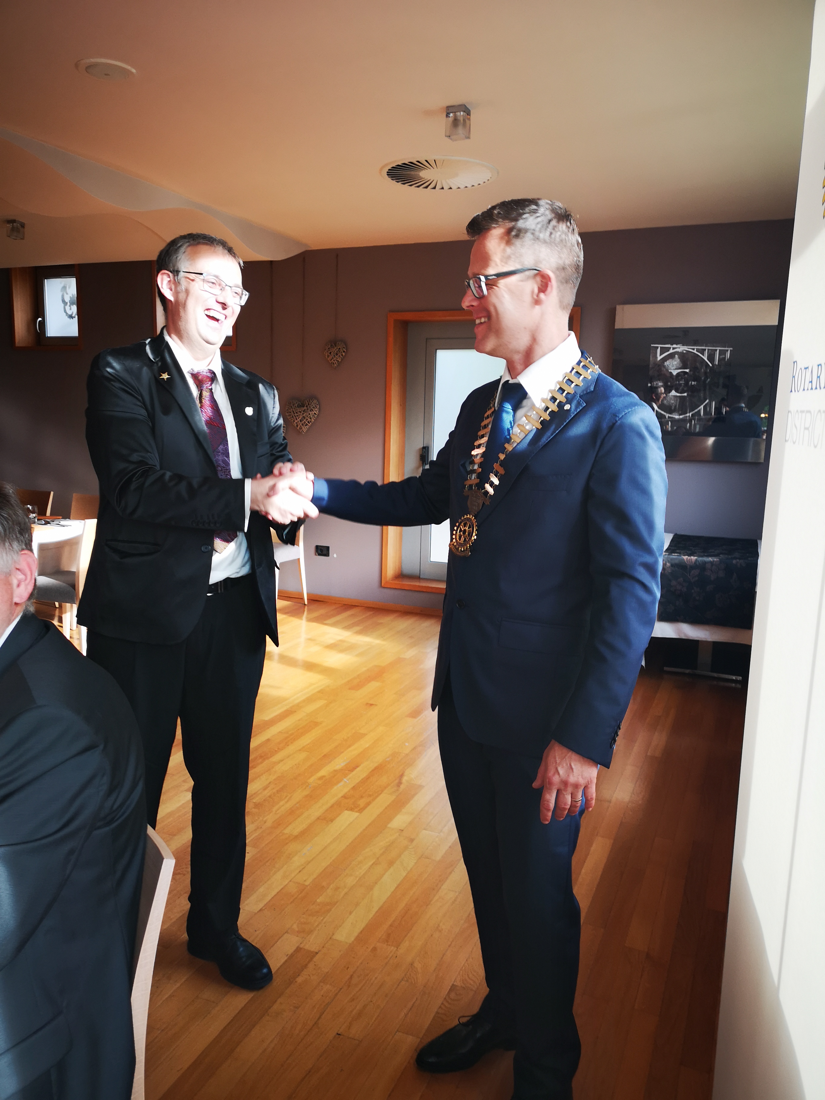 Ob koncu rotarijskega leta je na tradicionalni "predaji kladiva" predsednik Predrag Škrinjar, je predal kladivo novemu predsedniku Tomažu Živcu.