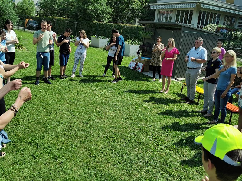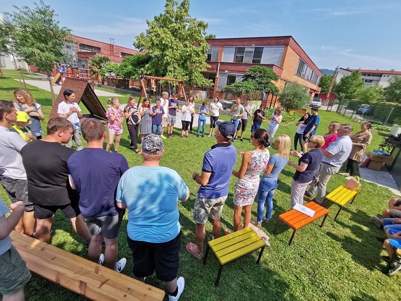 Učenci in delavci šole so pokazali še ostale rekvizite, ki so jih prejeli iz donacije – vrtna uta za shranjevanje nabavljenih rekvizitov, žoge, loparje in ostale pripomočke, ki spodbujajo učence in zaposlene k aktivnemu preživljanju prostega časa.