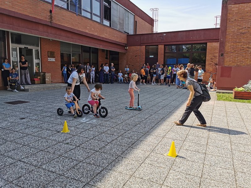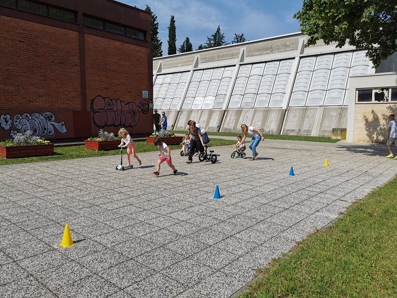 Najprej so se z vožnjo s poganjalčki predstavili otroci iz razvojnega oddelka, ki sicer »domujejo« v enoti novogoriškega vrtca Kekec. Učenci šole so se predstavili z vožnjo s skiroji, s katerimi so premagovali postavljen poligon in pri tem pokazali svoje gibalne spretnosti.